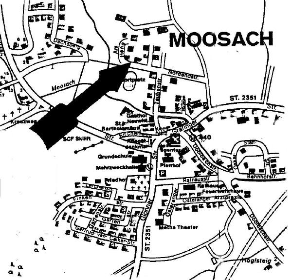 Die idyllisch gelegene Wohnanlage befindet sich 28 km südöstlich von München in Moosach bei Grafing (ca. 1400 Einwohner) S-Bahn Einzugsgebiet und nur ca. 15 Gehminuten vom beliebten Steinsee entfernt. Idyllische dörfliche Umgebung mit vielen Freizeitmöglichkeiten können Sie genießen wie: Reiten, Wandern, Radtouren, Vereinsleben, Kegelbahn, Tennisplätze, Fußballplatz, Meta-Theater u.a. Im Ort befinden sich Grundschule, Kindergarten, Arzt, Fischzucht, Bankautomat, Biergarten, Metzgerei und mehrere Gaststätten.